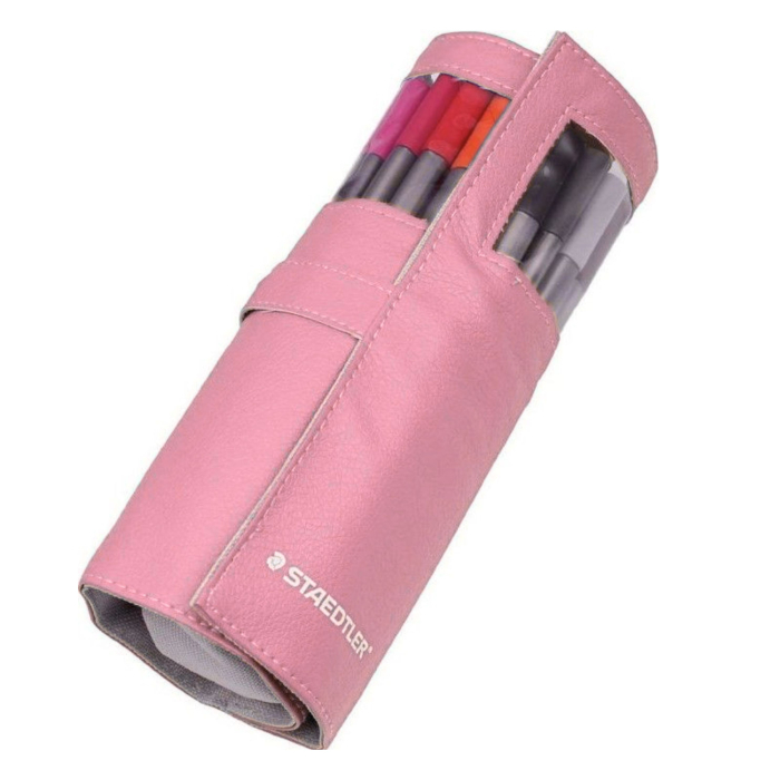 Un set cu 20 de pixuri colorate, într-un penar diferite culori: Roz, Negru, Albastru Pastel sau roz pastel.